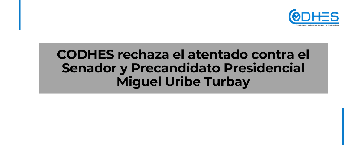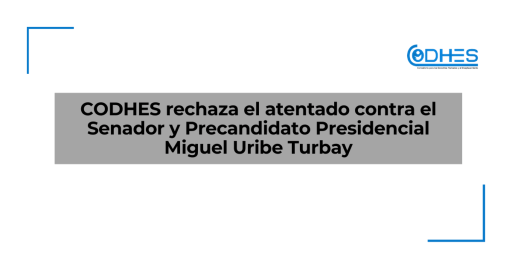 June 8, 2025Bogotá D.C., 7 de junio de 2025. La Consultoría para los Derechos Humanos y el Desplazamiento Forzado-CODHES, rechaza el atentado criminal contra el Senador y Precandidato Presidencial Miguel Uribe Turbay.